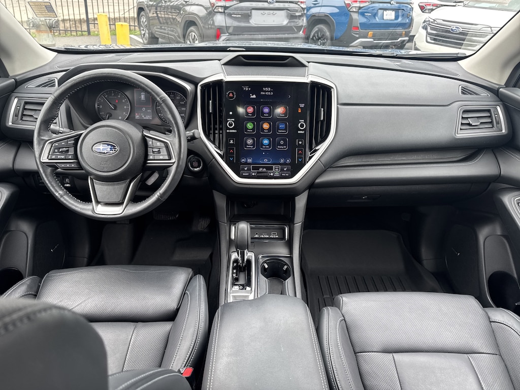 North Park Subaru is proud to offer this good-looking 2023 Subaru Ascent Limited. Well equipped with Technology Package (Cabin Connect, Panoramic Power Moonroof w/UV/Drk Tint Dual Glass, Radio: Subaru STARLINK 11.6" Multimedia Nav System, Retractable Cargo Area Cover, Satin Chrome Power-Folding Exterior Power Mirrors, and Surround View Monitor System), 3rd row seats: bench, 4-Wheel Disc Brakes, 6 Speakers, ABS brakes, Air Conditioning, Alloy wheels, AM/FM radio: SiriusXM, Auto High-beam Headlights, Auto-Dimming Exterior Mirror w/Approach Light, Auto-dimming Rear-View mirror, Automatic temperature control, Axle Ratio: 4.44, Brake assist, Bumpers: body-color, Delay-off headlights, Driver door bin, Driver vanity mirror, Dual front impact airbags, Dual front side impact airbags, Electronic Stability Control, Emergency communication system: STARLINK Safety and Security (Subscription Required), Exterior Parking Camera Rear, Four wheel independent suspension, Front anti-roll bar, Front Bucket Seats, Front Center Armrest, Front dual zone A/C, Front fog lights, Front reading lights, Fully automatic headlights, Garage door transmitter: HomeLink, Heated door mirrors, Heated Front Bucket Seats, Heated front seats, Heated rear seats, Heated steering wheel, HVAC memory, Illuminated entry, Knee airbag, Leather Shift Knob, Leather steering wheel, Low tire pressure warning, Memory seat, Occupant sensing airbag, Outside temperature display, Overhead airbag, Overhead console, Panic alarm, Passenger door bin, Passenger vanity mirror, Perforated Leather-Trimmed Upholstery, Power door mirrors, Power driver seat, Power Liftgate, Power passenger seat, Power steering, Power windows, Radio data system, Radio: Subaru STARLINK 11.6" Multimedia Plus System, Rear air conditioning, Rear anti-roll bar, Rear reading lights, Rear window defroster, Rear window wiper, Reclining 3rd row seat, Remote keyless entry, Security system, Speed control, Speed-sensing steering, Split folding rear seat, Spoiler, STARLINK/Apple CarPlay/Android Auto, Steering wheel mounted audio controls, Tachometer, Telescoping steering wheel, Tilt steering wheel, Traction control, Trip computer, Turn signal indicator mirrors, Variably intermittent wipers, and Wheels: 20" x 7.5 J Dk Gray Alloy w/Machine Finish.
