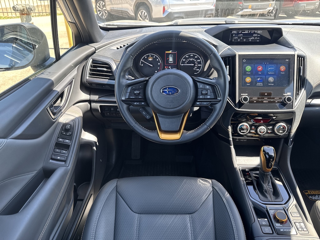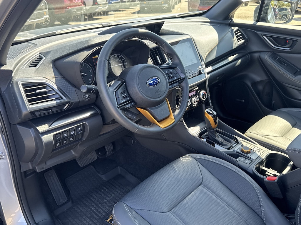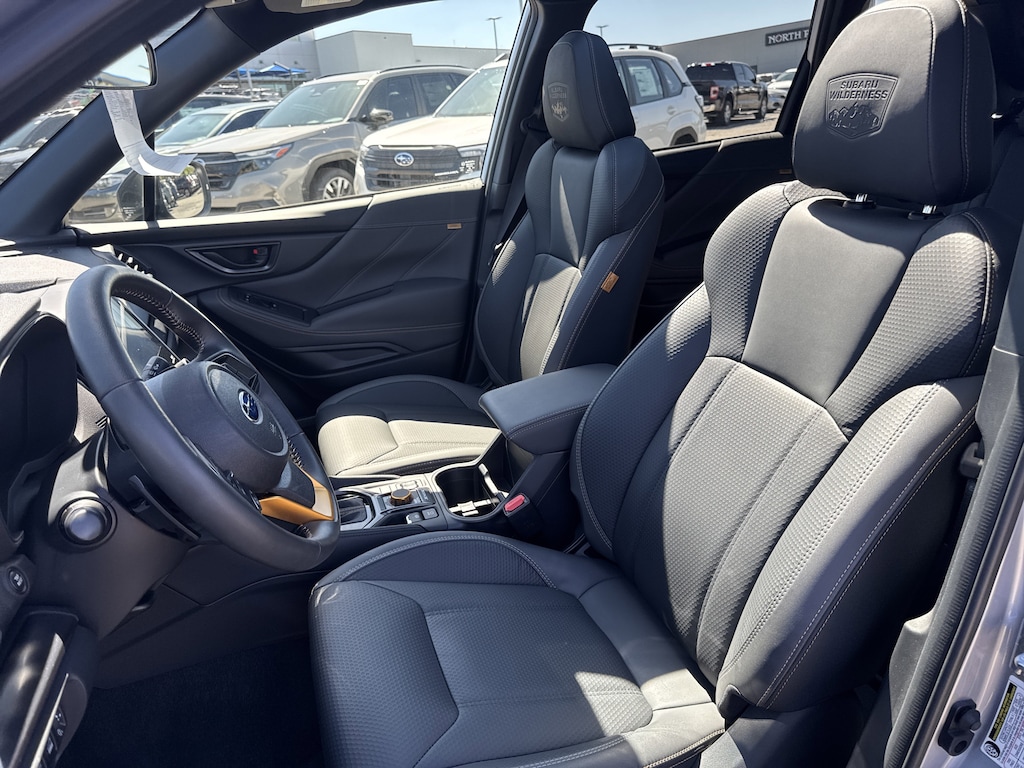 North Park Subaru is proud to offer this beautiful 2025 Subaru Forester Wilderness. Well equipped with harman/kardon Audio & Power Rear Gate (Power Rear Gate and Radio: Subaru 8.0" Multimedia Navigation System), 4-Wheel Disc Brakes, 6 Speakers, ABS brakes, Air Conditioning, Alloy wheels, AM/FM radio: SiriusXM, Anti-whiplash front head restraints, Auto High-beam Headlights, Automatic temperature control, Brake assist, Bumpers: body-color, Door Scuff Protector - Wilderness, Driver door bin, Driver vanity mirror, Dual front impact airbags, Dual front side impact airbags, Electronic Stability Control, Emergency communication system: MySubaru Safety (3-year free trial), Exterior Parking Camera Rear, Four wheel independent suspension, Front anti-roll bar, Front Bucket Seats, Front Center Armrest, Front dual zone A/C, Front fog lights, Front reading lights, Fully automatic headlights, Heated door mirrors, Heated Front Bucket Seats, Heated front seats, Illuminated entry, Knee airbag, Leather Shift Knob, Leather steering wheel, LED Upgrade, Low tire pressure warning, Occupant sensing airbag, Outside temperature display, Overhead airbag, Overhead console, Panic alarm, Passenger door bin, Passenger vanity mirror, Power door mirrors, Power driver seat, Power moonroof: Panoramic, Power steering, Power windows, Radio data system, Radio: Subaru 8.0" Multimedia Plus System, Rear anti-roll bar, Rear Bumper Cover, Rear seat center armrest, Rear Seatback Protector - Wilderness, Rear window defroster, Rear window wiper, Remote keyless entry, Security system, Side Sill Plates - Wilderness, Speed control, Speed-sensing steering, Splash Guards - Wilderness, Split folding rear seat, Spoiler, Steering wheel mounted audio controls, Tachometer, Telescoping steering wheel, Textured StarTex Upholstery, Tilt steering wheel, Traction control, Trip computer, Turn signal indicator mirrors, Variably intermittent wipers, and Wheels: 17" x 7.0 J Matte Black Finish Alum-Alloy.
