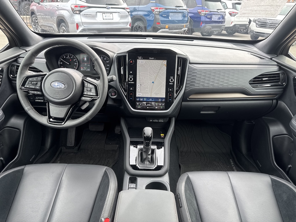 North Park Subaru is excited to offer this wonderful 2025 Subaru Forester Touring. Well equipped with Standard Model, 11 Speakers, 4-Wheel Disc Brakes, ABS brakes, Air Conditioning, Alloy wheels, AM/FM radio: SiriusXM with 360L, Anti-whiplash front head restraints, Auto High-beam Headlights, Auto-Dimming Exterior Mirror w/Approach Light, Automatic temperature control, Brake assist, Bumpers: body-color, Cargo Sidewall Protector, Cargo Tray, Driver door bin, Driver vanity mirror, Dual front impact airbags, Dual front side impact airbags, Electronic Stability Control, Emergency communication system: MySubaru Safety (3-year free trial), Exterior Parking Camera Rear, Four wheel independent suspension, Front anti-roll bar, Front Bucket Seats, Front Center Armrest, Front dual zone A/C, Front fog lights, Front reading lights, Fully automatic headlights, harman/kardon® Speakers, Heated & Ventilated Front Bucket Seats, Heated door mirrors, Heated front seats, Heated rear seats, Heated steering wheel, HVAC memory, Illuminated entry, Knee airbag, Leather steering wheel, LED Upgrade, Low tire pressure warning, Memory seat, Navigation System, Occupant sensing airbag, Outside temperature display, Overhead airbag, Overhead console, Panic alarm, Passenger door bin, Passenger vanity mirror, Perforated Leather-Trimmed Upholstery, Power door mirrors, Power driver seat, Power Liftgate, Power moonroof: Panoramic, Power passenger seat, Power steering, Power windows, Radio data system, Radio: Subaru 11.6" Multimedia Navigation System, Rear anti-roll bar, Rear Bumper Cover, Rear seat center armrest, Rear Seatback Protector, Rear window defroster, Rear window wiper, Remote keyless entry, Security system, Side Sill Plates - Front, Speed control, Speed-sensing steering, Split folding rear seat, Spoiler, Steering wheel mounted audio controls, Tachometer, Telescoping steering wheel, Tilt steering wheel, Traction control, Trip computer, Turn signal indicator mirrors, Variably intermittent wipers, Ventilated front seats, and Wheels: 19" x 7.5 J Dark Gray Aluminum-Alloy.