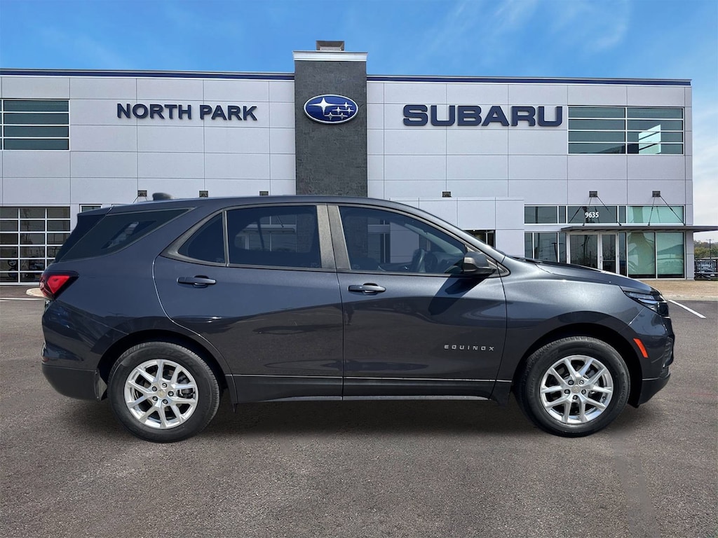 North Park Subaru is pumped up to offer this superb-looking 2022 Chevrolet Equinox LS. Well equipped with Preferred Equipment Group 1LS, 17" Aluminum Wheels, 2 Rear USB Charging-Only Ports, 2 USB Ports & Auxiliary Input Jack, 3.50 Final Drive Axle Ratio, 4-Way Manual Driver Seat Adjuster, 4-Wheel Disc Brakes, 6 Speaker Audio System Feature, 6 Speakers, ABS brakes, Air Conditioning, Alloy wheels, AM/FM radio: SiriusXM, Auto High-beam Headlights, Bluetooth® For Phone, Brake assist, Bumpers: body-color, Compass, Delay-off headlights, Driver door bin, Driver vanity mirror, Dual front impact airbags, Dual front side impact airbags, Electronic Stability Control, Emergency communication system: OnStar and Chevrolet connected services capable, Four wheel independent suspension, Front anti-roll bar, Front Bucket Seats, Front Center Armrest, Front Passenger 4-Way Manual Seat Adjuster, Front reading lights, Fully automatic headlights, Heated door mirrors, Horizontal Cargo Net (LPO), Illuminated entry, Low tire pressure warning, Occupant sensing airbag, Outside temperature display, Overhead airbag, Overhead console, Panic alarm, Passenger door bin, Passenger vanity mirror, Power door mirrors, Power steering, Power windows, Premium audio system: Chevrolet Infotainment 3, Premium Cloth Seat Trim, Radio data system, Radio: Chevrolet Infotainment 3 System w/AM/FM, Rear anti-roll bar, Rear reading lights, Rear seat center armrest, Rear window defroster, Rear window wiper, Remote keyless entry, Security system, Set of 4 Wheel Locks (LPO), SiriusXM Radio, Speed control, Speed-sensing steering, Split folding rear seat, Spoiler, Steering wheel mounted audio controls, Tachometer, Telescoping steering wheel, Tilt steering wheel, Traction control, Trip computer, Variably intermittent wipers, and Wireless Apple CarPlay/Wireless Android Auto.