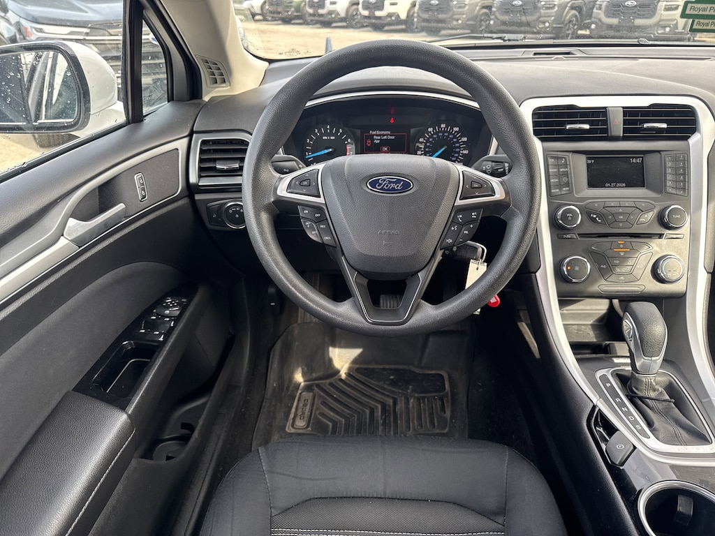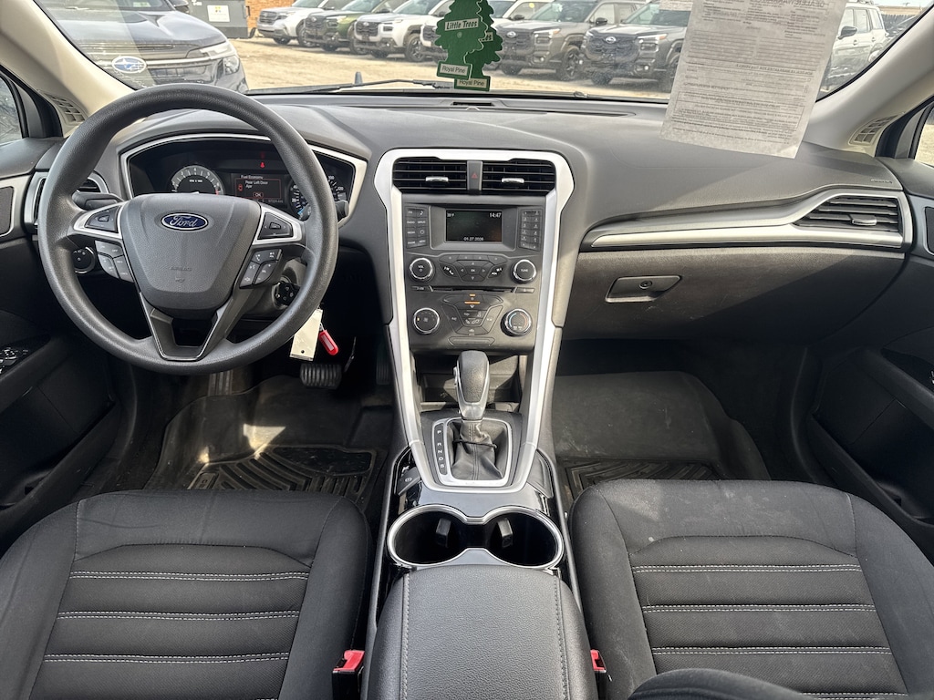 North Park Subaru is pumped up to offer this stunning 2015 Ford Fusion SE. Well equipped with 17" Painted Aluminum Wheels, 4-Wheel Disc Brakes, 6 Speakers, ABS brakes, Air Conditioning, Alloy wheels, AM/FM radio: SiriusXM, Brake assist, Bumpers: body-color, CD player, Cloth Front Bucket Seats, Compass, Delay-off headlights, Driver door bin, Driver vanity mirror, Dual front impact airbags, Dual front side impact airbags, Electronic Stability Control, Exterior Parking Camera Rear, Four wheel independent suspension, Front anti-roll bar, Front Bucket Seats, Front Center Armrest, Front reading lights, Fully automatic headlights, Heated door mirrors, Illuminated entry, Knee airbag, Low tire pressure warning, Occupant sensing airbag, Outside temperature display, Overhead airbag, Overhead console, Panic alarm, Passenger door bin, Passenger vanity mirror, Power door mirrors, Power driver seat, Power passenger seat, Power steering, Power windows, Radio data system, Radio: AM/FM Stereo/MP3/Single-CD, Rear anti-roll bar, Rear reading lights, Rear seat center armrest, Rear window defroster, Remote keyless entry, Security system, SIRIUS Satellite Radio, Speed control, Speed-sensing steering, Speed-Sensitive Wipers, Split folding rear seat, Steering wheel mounted audio controls, SYNC Communications & Entertainment System, Tachometer, Telescoping steering wheel, Tilt steering wheel, Traction control, Trip computer, Turn signal indicator mirrors, and Variably intermittent wipers.