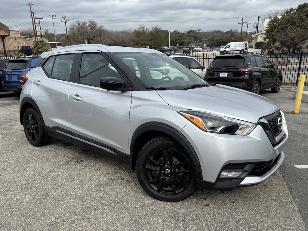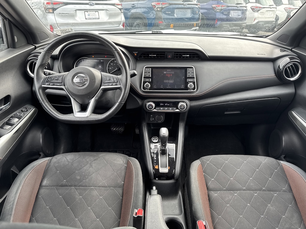 North Park Subaru is pumped up to offer this terrific-looking 2020 Nissan Kicks SR. Well equipped with 17" Alloy Wheels, 3.927 Axle Ratio, 6 Speakers, ABS brakes, Air Conditioning, Alloy wheels, AM/FM radio: SiriusXM, Auto High-beam Headlights, Automatic temperature control, Blind Spot Warning, Brake assist, Bumpers: body-color, Carpeted Floor Mats w/Cargo Mat, Center Armrest w/Storage, Cloth Seat Trim, Compass, Delay-off headlights, Driver door bin, Driver vanity mirror, Driver's Seat Mounted Armrest, Dual front impact airbags, Dual front side impact airbags, Electronic Stability Control, Exterior Parking Camera Rear, Front anti-roll bar, Front Bucket Seats, Front fog lights, Front reading lights, Front wheel independent suspension, Fully automatic headlights, Heated door mirrors, Illuminated entry, Knee airbag, Leather Shift Knob, Low tire pressure warning, NissanConnect featuring Apple CarPlay and Android Auto, Occupant sensing airbag, Outside temperature display, Overhead airbag, Panic alarm, Passenger door bin, Passenger vanity mirror, Power door mirrors, Power steering, Power windows, Radio data system, Radio: AM/FM Audio System, Rear Parking Sensors, Rear reading lights, Rear Roof Spoiler, Rear side impact airbag, Rear window defroster, Rear window wiper, Remote keyless entry, Roof rack: rails only, Speed control, Splash Guards Grain (4 Piece), Split folding rear seat, Spoiler, Sport steering wheel, Steering wheel mounted audio controls, Tachometer, Telescoping steering wheel, Tilt steering wheel, Traction control, Trip computer, Turn signal indicator mirrors, Variably intermittent wipers, and Wheels: 17" Black Alloy.