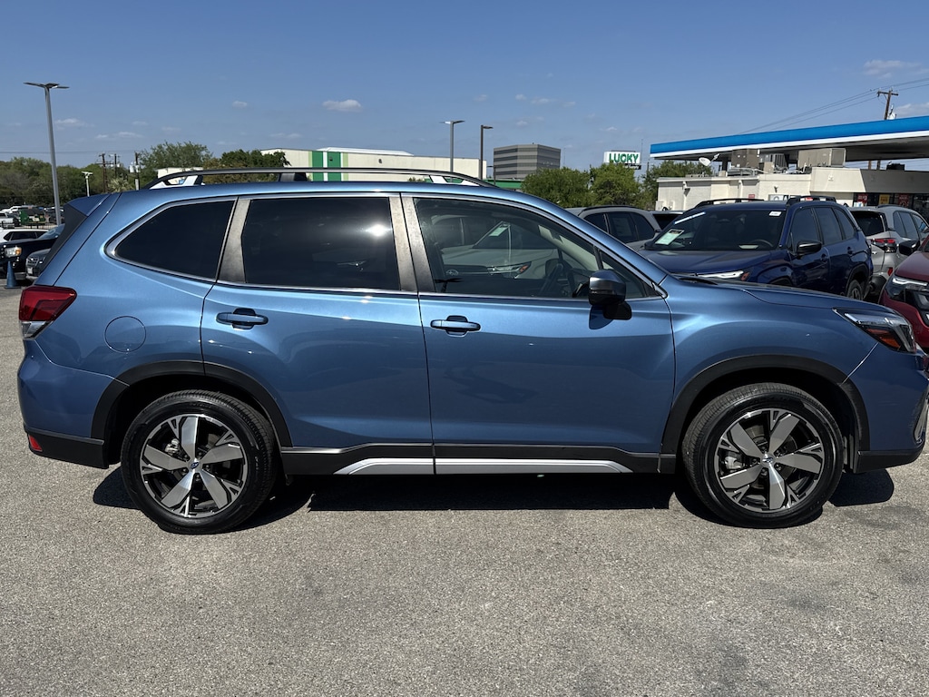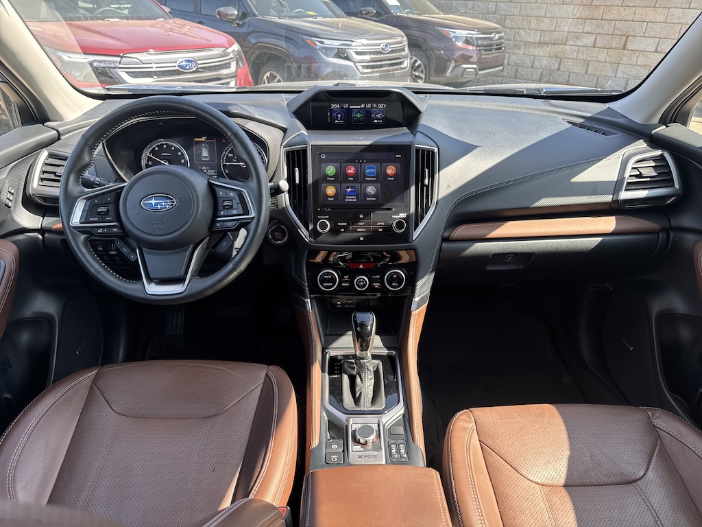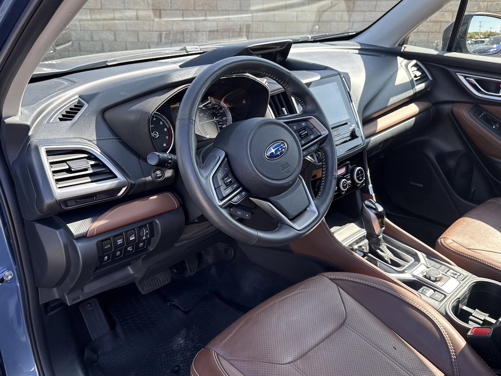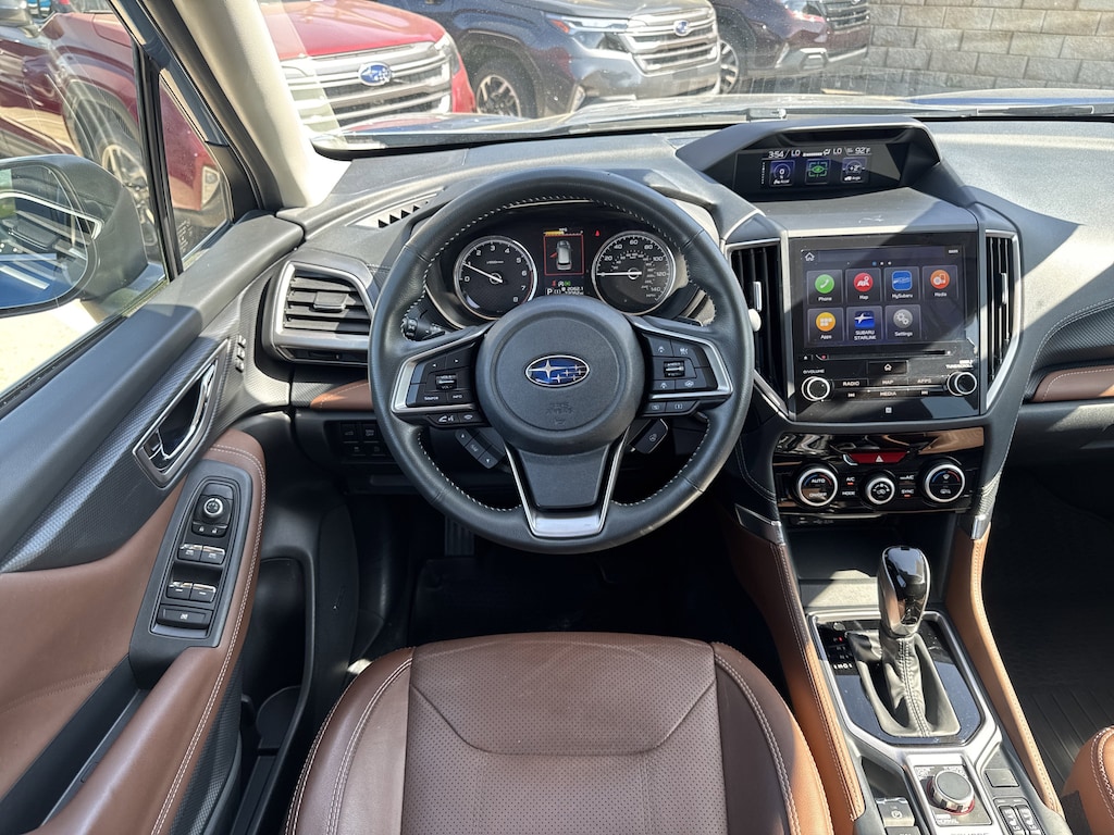 North Park Subaru is proud to offer this handsome 2021 Subaru Forester Touring. Well equipped with Popular Package #2 (All-Weather Floor Liners, Auto-Dimming Exterior Mirror w/Approach Lighting, Auto-Dimming Mirror w/Compass & HomeLink, Cargo Net, and Rear Bumper Cover), Standard Model, 3.70 Axle Ratio, 4-Wheel Disc Brakes, 9 Speakers, ABS brakes, Air Conditioning, Alloy wheels, AM/FM radio: SiriusXM, Auto High-beam Headlights, Automatic temperature control, Brake assist, Bumpers: body-color, CD player, Driver door bin, Driver vanity mirror, Dual front impact airbags, Dual front side impact airbags, Electronic Stability Control, Emergency communication system: STARLINK Safety and Security (Subscription Required), Exterior Parking Camera Rear, Four wheel independent suspension, Front anti-roll bar, Front Bucket Seats, Front Center Armrest, Front dual zone A/C, Front fog lights, Front reading lights, Fully automatic headlights, harman kardon 576W Amp & Speaker System, harman/kardon® Speakers, Heated door mirrors, Heated Front Bucket Seats, Heated front seats, Heated rear seats, Heated steering wheel, HVAC memory, Illuminated entry, Knee airbag, Leather Shift Knob, Low tire pressure warning, Memory seat, Navigation System, Occupant sensing airbag, Outside temperature display, Overhead airbag, Overhead console, Paddle-Shift Control Switches, Panic alarm, Passenger door bin, Passenger vanity mirror, Perforated Leather-Trimmed Upholstery, Power door mirrors, Power driver seat, Power Liftgate, Power moonroof: Panoramic, Power passenger seat, Power steering, Power windows, Premium audio system: harman/kardon, Radio data system, Radio: Subaru Starlink 8.0" Multimedia Nav System, Rear anti-roll bar, Rear seat center armrest, Rear Seatback Protector, Rear window defroster, Rear window wiper, Remote keyless entry, Roof rack: rails only, Security system, Speed control, Speed-sensing steering, Split folding rear seat, Spoiler, STARLINK/Apple CarPlay/Android Auto, Steering wheel mounted audio controls, Tachometer, Telescoping steering wheel, Tilt steering wheel, Traction control, Trip computer, Turn signal indicator mirrors, Variably intermittent wipers, and Wheels: 18" x 7.0J Blk Machine Touring Alum Alloy.
