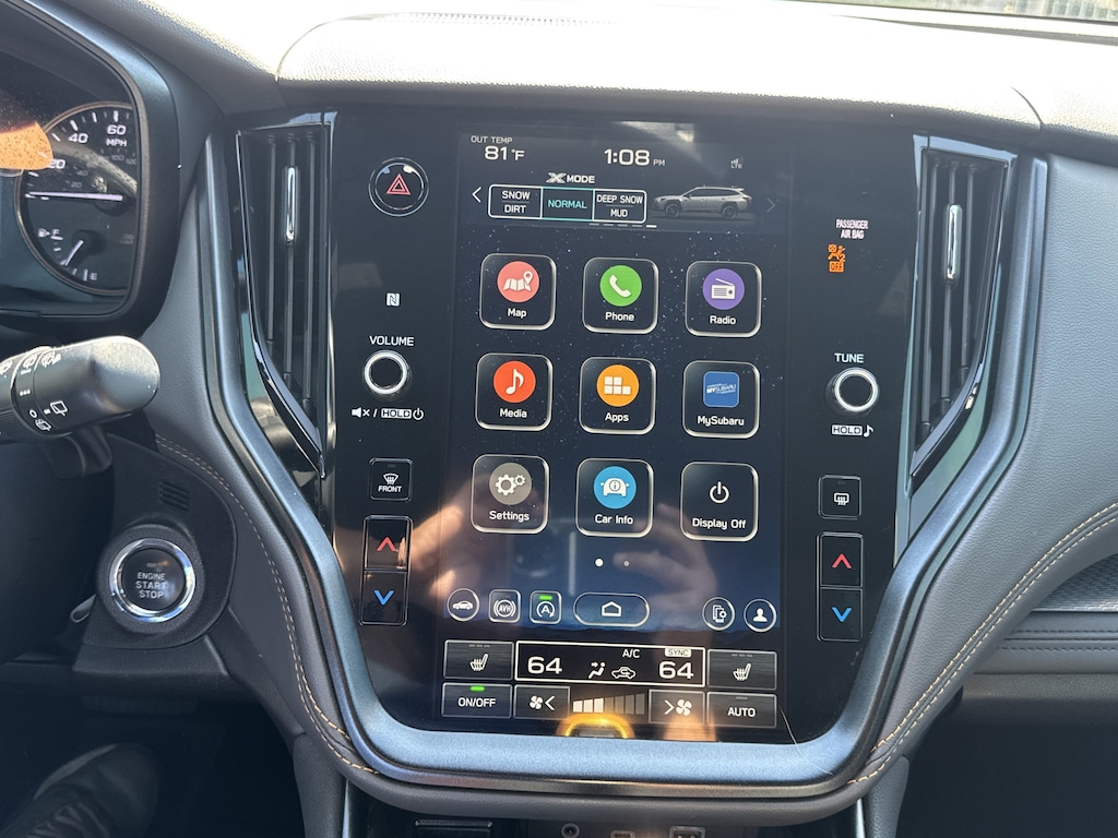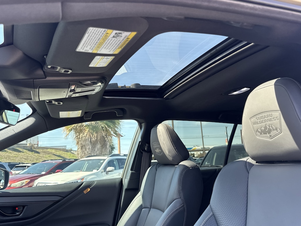 North Park Subaru is pleased to offer this great-looking 2023 Subaru Outback Wilderness. Well equipped with Power Moonroof & Navigation & RAB (Power Moonroof, Radio: Subaru STARLINK 11.6" Multimedia Nav System, and Reverse Automatic Braking (RAB) System), 4-Wheel Disc Brakes, 4.444 Axle Ratio, 6 Speakers, ABS brakes, Air Conditioning, Alloy wheels, AM/FM radio: SiriusXM, Auto High-beam Headlights, Auto-Dimming Exterior Mirror w/Approach Light, Auto-dimming Rear-View mirror, Automatic temperature control, Autumn Green Metallic Body Side Molding, Brake assist, Cargo Net, Compass, Driver door bin, Driver vanity mirror, Dual front impact airbags, Dual front side impact airbags, Electronic Stability Control, Emergency communication system: STARLINK Safety Plus (3-year free trial), Exterior Parking Camera Rear, Footwell Illumination Kit, Four wheel independent suspension, Front anti-roll bar, Front Bucket Seats, Front Center Armrest w/Storage, Front dual zone A/C, Front fog lights, Front reading lights, Fully automatic headlights, Garage door transmitter: HomeLink, Heated door mirrors, Heated Front Bucket Seats, Heated front seats, Heated rear seats, Illuminated entry, Knee airbag, Leather steering wheel, Low tire pressure warning, Occupant sensing airbag, Outside temperature display, Overhead airbag, Overhead console, Panic alarm, Passenger door bin, Passenger vanity mirror, Power door mirrors, Power driver seat, Power Liftgate, Power passenger seat, Power steering, Power windows, Radio: Subaru STARLINK 11.6" Multimedia Plus Sys, Rear anti-roll bar, Rear Seat Back Protector, Rear seat center armrest, Rear window defroster, Rear window wiper, Remote keyless entry, Roof rack, Security system, Speed control, Speed-sensing steering, Splash Guards, Split folding rear seat, Spoiler, StarTex-Trimmed Upholstery, Steering wheel mounted audio controls, Steering Wheel Paddle Shift Control Switches, Tachometer, Telescoping steering wheel, Tilt steering wheel, Traction control, Trip computer, Turn signal indicator mirrors, Variably intermittent wipers, Wheels: 17" x 7J Black Aluminum Alloy, and Wireless Charger.