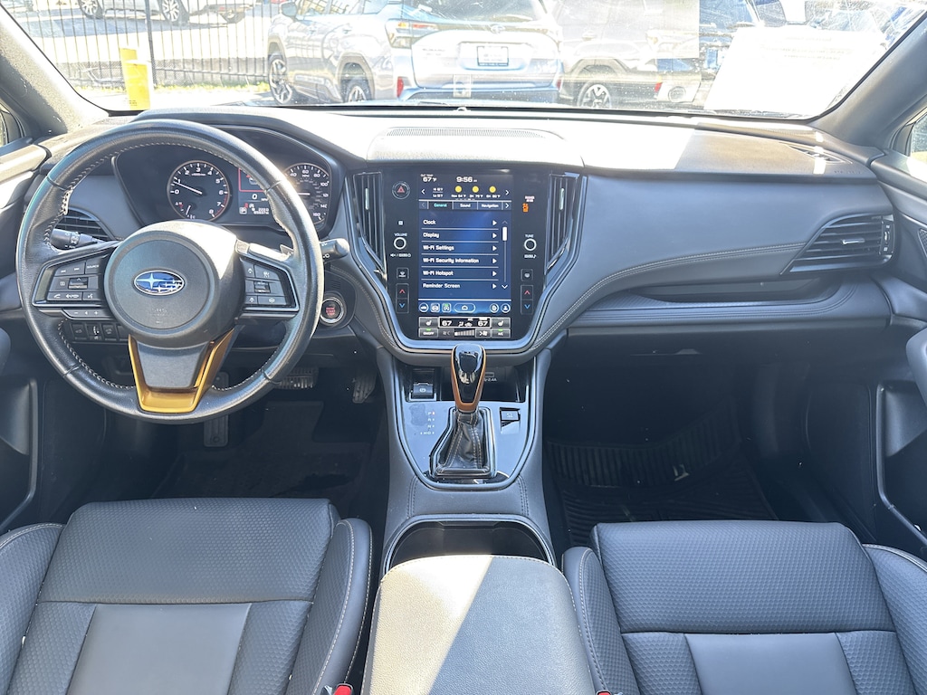 North Park Subaru is proud to offer this terrific 2023 Subaru Outback Wilderness. Well equipped with Power Moonroof & Navigation & RAB (Power Moonroof, Radio: Subaru STARLINK 11.6" Multimedia Nav System, and Reverse Automatic Braking (RAB) System), 4-Wheel Disc Brakes, 4.444 Axle Ratio, 6 Speakers, ABS brakes, Air Conditioning, Alloy wheels, AM/FM radio: SiriusXM, Auto High-beam Headlights, Auto-Dimming Exterior Mirror w/Approach Light, Auto-dimming Rear-View mirror, Automatic temperature control, Brake assist, Compass, Driver door bin, Driver vanity mirror, Dual front impact airbags, Dual front side impact airbags, Electronic Stability Control, Emergency communication system: STARLINK Safety Plus (3-year free trial), Exterior Parking Camera Rear, Four wheel independent suspension, Front anti-roll bar, Front Bucket Seats, Front Center Armrest w/Storage, Front dual zone A/C, Front fog lights, Front reading lights, Fully automatic headlights, Garage door transmitter: HomeLink, Heated door mirrors, Heated Front Bucket Seats, Heated front seats, Heated rear seats, Ice Silver Metallic Body Side Molding, Ice Silver Metallic Door Edge Guards, Illuminated entry, Knee airbag, Leather steering wheel, Low tire pressure warning, Occupant sensing airbag, Outside temperature display, Overhead airbag, Overhead console, Panic alarm, Passenger door bin, Passenger vanity mirror, Power door mirrors, Power driver seat, Power Liftgate, Power passenger seat, Power steering, Power windows, Radio: Subaru STARLINK 11.6" Multimedia Plus Sys, Rear anti-roll bar, Rear seat center armrest, Rear window defroster, Rear window wiper, Remote keyless entry, Roof rack, Security system, Speed control, Speed-sensing steering, Split folding rear seat, Spoiler, StarTex-Trimmed Upholstery, Steering wheel mounted audio controls, Steering Wheel Paddle Shift Control Switches, Tachometer, Telescoping steering wheel, Tilt steering wheel, Traction control, Trip computer, Turn signal indicator mirrors, Variably intermittent wipers, Wheels: 17" x 7J Black Aluminum Alloy, and Windshield Sunshade.