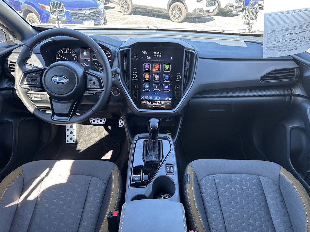 North Park Subaru is very proud to offer this beautiful 2024 Subaru Crosstrek Sport. Well equipped with Standard Model, 3.70 Axle Ratio, 4-Wheel Disc Brakes, 6 Speakers, ABS brakes, Air Conditioning, Alloy wheels, AM/FM radio: SiriusXM, Anti-whiplash front head restraints, Auto High-beam Headlights, Automatic temperature control, Brake assist, Bumpers: body-color, Driver door bin, Driver vanity mirror, Dual front impact airbags, Dual front side impact airbags, Electronic Stability Control, Emergency communication system: STARLINK Safety and Security (Subscription Required), Exterior Parking Camera Rear, Four wheel independent suspension, Front anti-roll bar, Front Bucket Seats, Front Center Armrest, Front dual zone A/C, Front fog lights, Front reading lights, Fully automatic headlights, Heated door mirrors, Heated Front Bucket Seats, Heated front seats, Illuminated entry, Knee airbag, Leather Shift Knob, Low tire pressure warning, Occupant sensing airbag, Outside temperature display, Overhead airbag, Overhead console, Panic alarm, Passenger door bin, Passenger vanity mirror, Power door mirrors, Power steering, Power windows, Radio data system, Radio: Subaru STARLINK 11.6" Multimedia Plus Sys, Rear anti-roll bar, Rear seat center armrest, Rear window defroster, Rear window wiper, Remote keyless entry, Security system, Speed control, Speed-sensing steering, Split folding rear seat, Spoiler, Sport Cloth Upholstery, STARLINK/Apple CarPlay/Android Auto, Steering wheel mounted audio controls, Tachometer, Telescoping steering wheel, Tilt steering wheel, Traction control, Trip computer, Turn signal indicator mirrors, Variably intermittent wipers, and Wheels: 18" x 7.0J Dark Gray Aluminum Alloy.