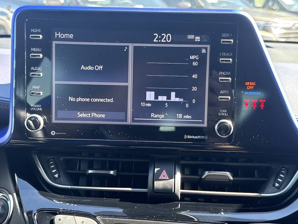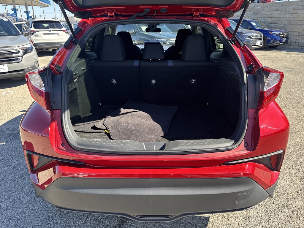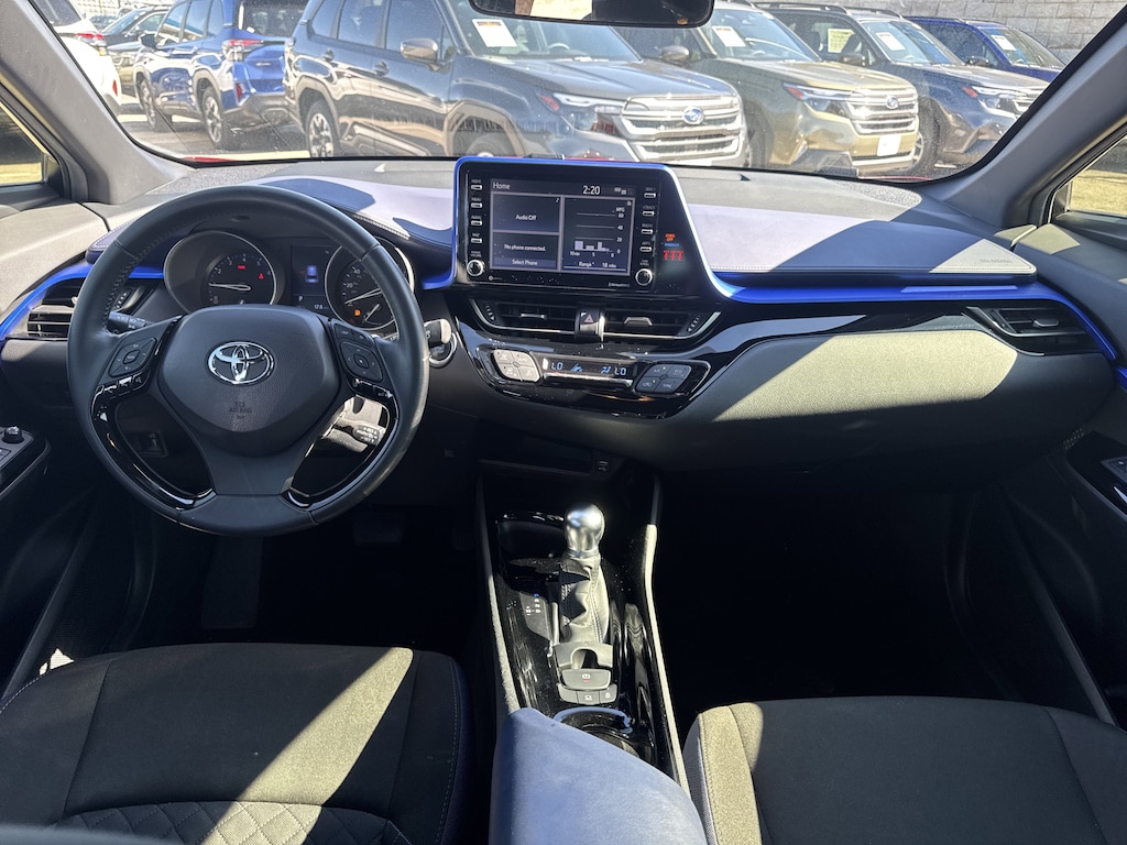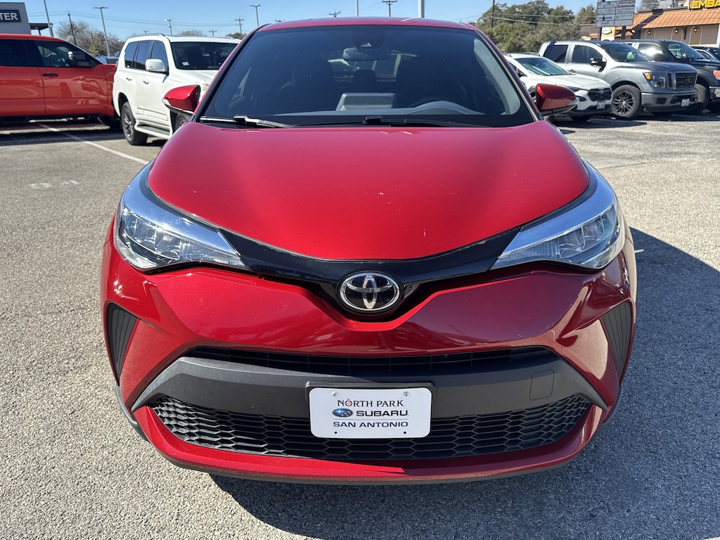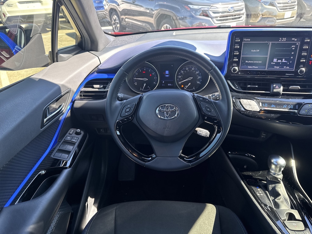 North Park Subaru is very proud to offer this fantastic 2020 Toyota C-HR XLE. Well equipped with 4-Wheel Disc Brakes, 6 Speakers, ABS brakes, Air Conditioning, AM/FM radio: SiriusXM, Apple CarPlay/Android Auto, Auto High-beam Headlights, Auto-dimming Rear-View mirror, Automatic temperature control, Axle Ratio: TBD, Brake assist, Bumpers: body-color, Delay-off headlights, Driver door bin, Driver vanity mirror, Dual front impact airbags, Dual front side impact airbags, Electronic Stability Control, Emergency communication system: Safety Connect with 1-year trial, Exterior Parking Camera Rear, Four wheel independent suspension, Front anti-roll bar, Front Bucket Seats, Front Center Armrest, Front dual zone A/C, Front reading lights, Fully automatic headlights, Heated door mirrors, Illuminated entry, Knee airbag, Leather Shift Knob, Low tire pressure warning, Occupant sensing airbag, Outside temperature display, Overhead airbag, Panic alarm, Passenger door bin, Passenger vanity mirror, Power door mirrors, Power steering, Power windows, Radio data system, Radio: AM/FM Stereo w/8" Touch-Screen Display, Rear anti-roll bar, Rear side impact airbag, Rear window defroster, Rear window wiper, Remote keyless entry, Speed control, Speed-sensing steering, Split folding rear seat, Spoiler, Steering wheel mounted audio controls, Tachometer, Telescoping steering wheel, Tilt steering wheel, Traction control, Trip computer, Turn signal indicator mirrors, and Variably intermittent wipers.